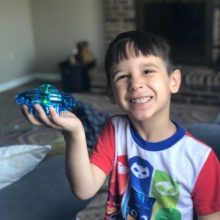 This was a stocking stuffer type present and I didn’t have much in the way of expectations. After using it, I’m surprised this toy isn’t more popular. After charging you turn it on and rock it back and forth for just a few seconds to calibrate it. Then toss it in the air and it takes care of itself. In an open room it moves around on its own and kids can control it with what looks like Jedi hand gestures. In a cramped room it can start acting like a fly on a window screen and bounce around until it loses control because the sensors over compensate. Even so, the propellers are contained inside the body and don’t get damaged or get thread or hair wrapped up in them like other drones. The battery only lasts for about 5+ minutes, but so does my toddler’s attention span, so it’s still a great little toy.